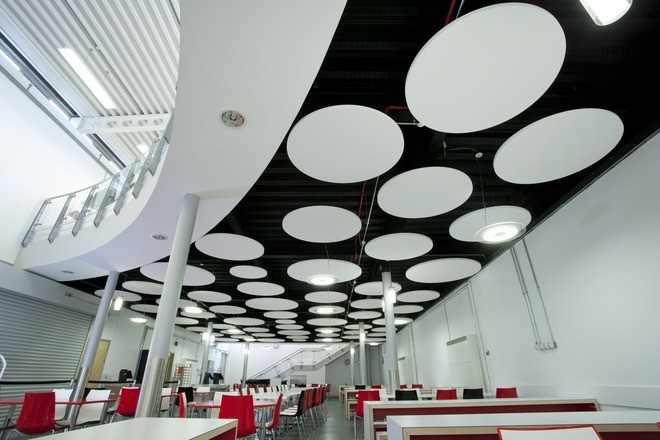 Ecophon Solo Circle е акустично решение, което позволява да не се инсталира на целия таван. Solo Circle е подходящ за сгради, където обемът на стаята може да бъде поддържан. Продуктът е подходящ и тогава, когато TABS (Thermally Activated Building System) е избрана като охладителна система. Ecophon Solo Circle е не рамкирана свободно висяща повърхност и предлага много възможности в избора на дизайн на цветовете и окачените системи. Има три вида инсталационни системи за окачване, които се използват.