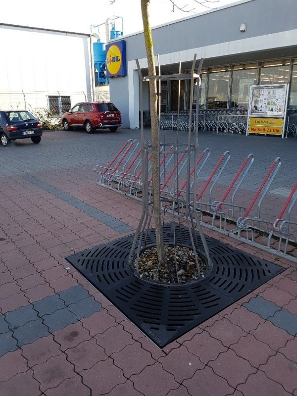 Бетонов фундамент квадрат за вграждена рамка и решетка за защита кореновата система на дърво
