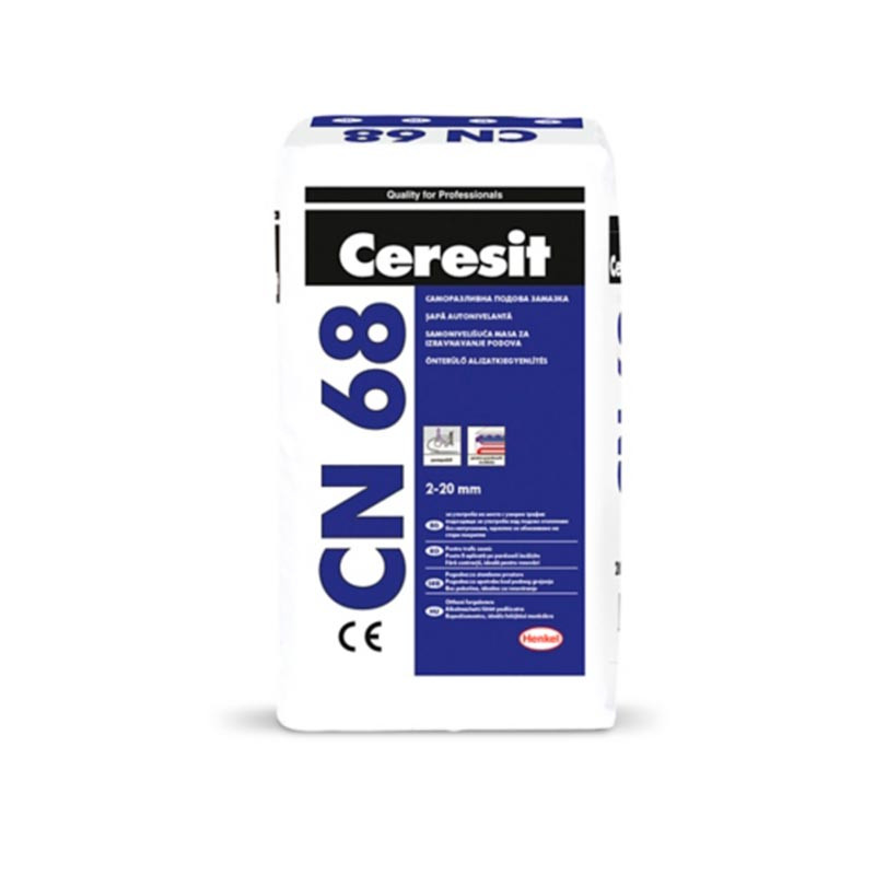 CERESIT CN 68 е изравняваща саморазливна подова замазка на калциево-сулфатна основа, за слоеве от 2 до 20 mm.