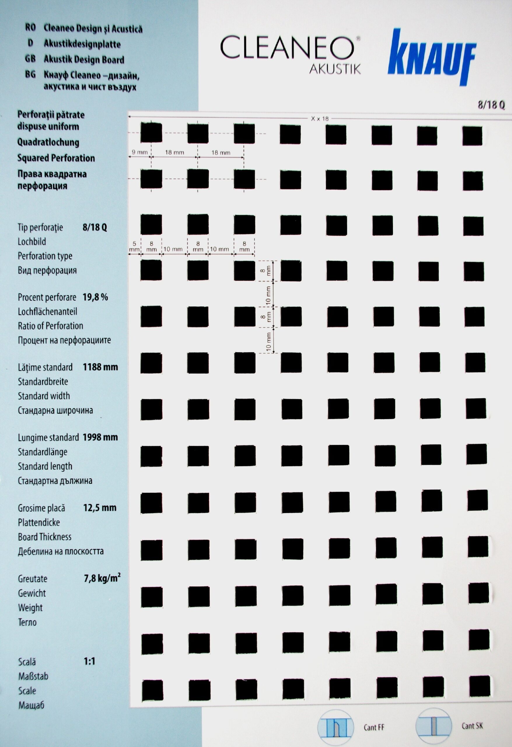 Гипсокартон Кнауф Cleaneo Akustic-права квадратна перфорация (Q)