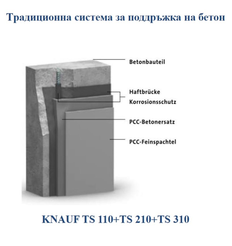 KNAUF TS 210 – полимероциментова смес за репрофилиране