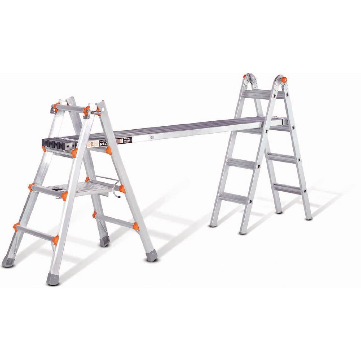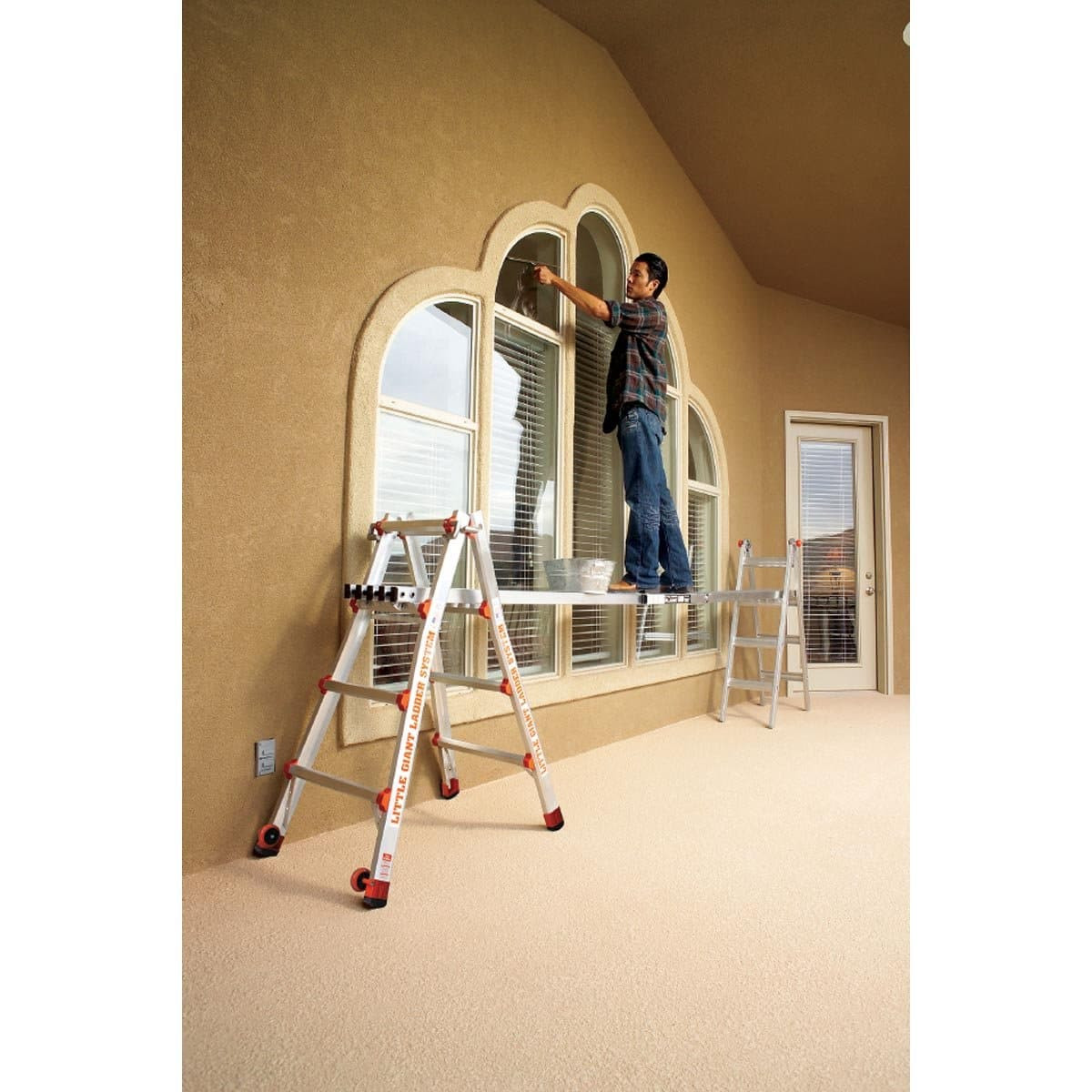 Little Giant Work Plank превръща всяка една от нашите мултифункционални стълби в работно скеле. Тази платформа е предназначена да издържи 150 кг. Дава възможност на човек да застане в изправено положение и да използва двете си ръце, докато е на стълбата. Може да се сгъва в почти половината от удължената си дължина
