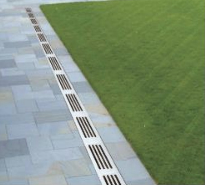 • Линеен отводнител за пешеходни зони: алеи, тераси, басейни, градини