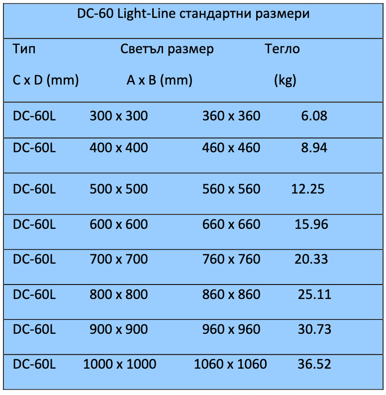 • Номиналана ширина 300х 300 mm, габаритна: 360х 360 mm