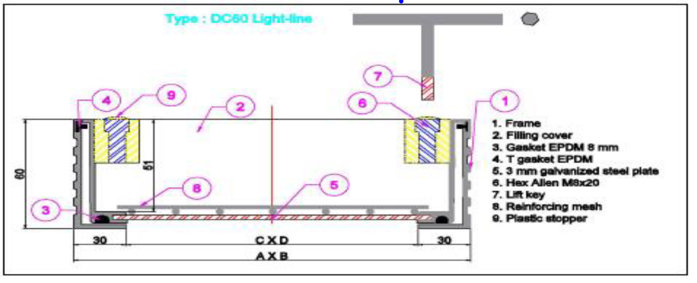 Информация и характеристики Ревизионен капак за достъп с вграждане на настилка LightLine60: