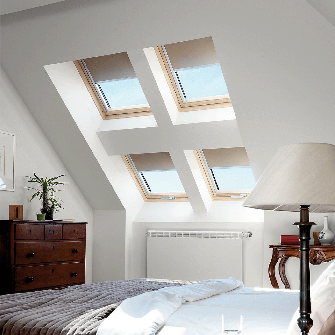 Прозорци VELUX са оборудвани с предварително монтирани конзоли, за улеснен монтаж на щорите.