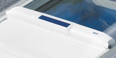 Външен соларен сенник с дистанционно управление. Ефективно защитава от жегата, като същевременно пропуска светлина в помещението. Монтира се между прозореца и купола и е съвместим само с прозрачен купол.