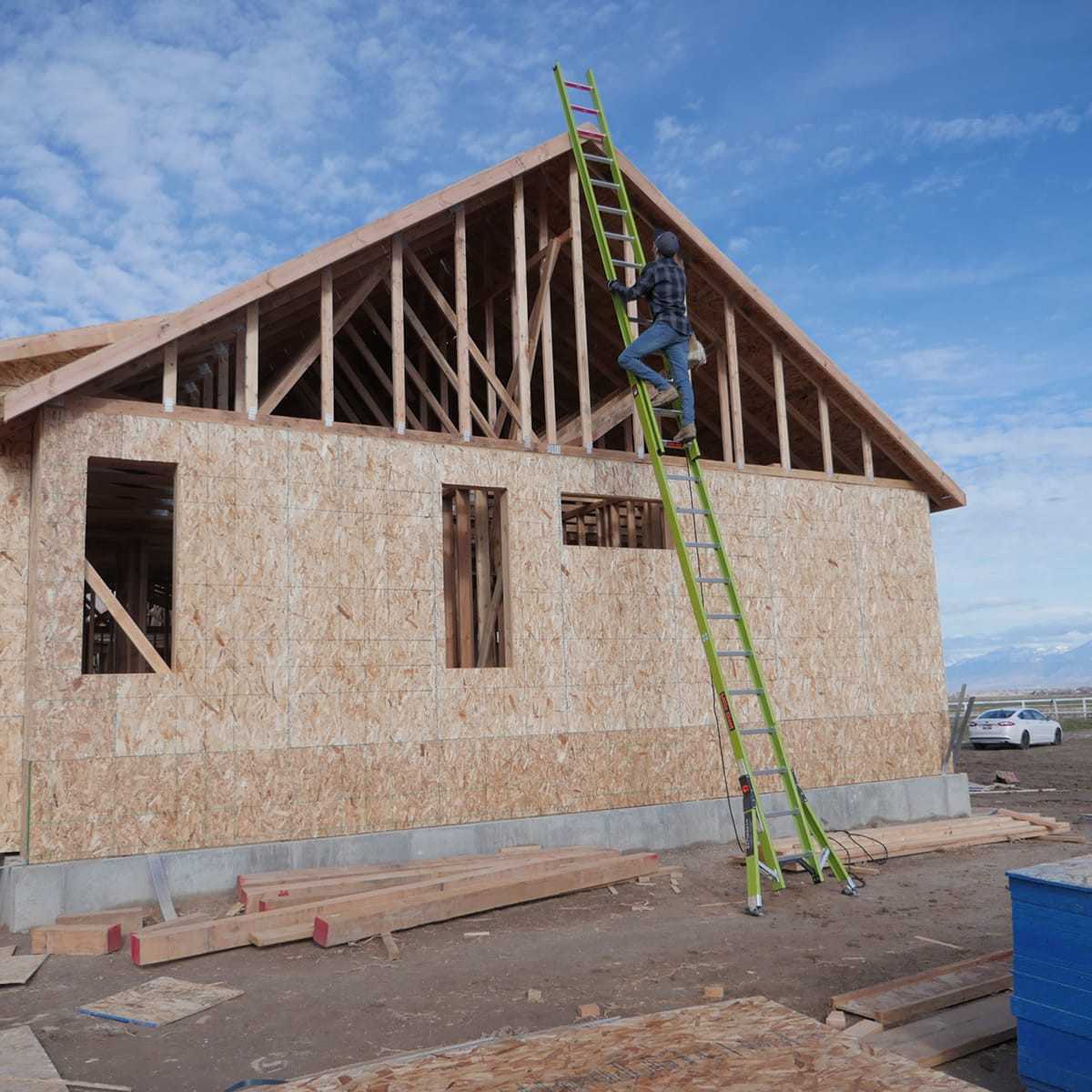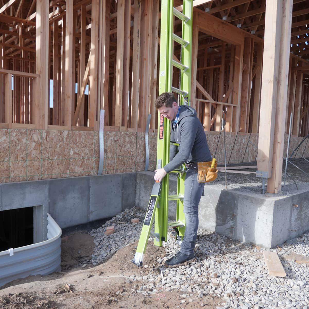 Този конкретен модел предлага система за изравняване, която удвоява ширината на основата на стълбата, като същевременно увеличава стабилността на страничния ѝ връх. По-лек от най-леката обикновена удължителна стълба на всеки друг производител, този модел предлага стабилна настройка за всяка работа. За по-нататъшно подпомагане при изравняване на стълбата, този модел разполага с ниво на балонче и индикатор за ъгъл отпред назад, като по този начин допълнително помага за безопасното поставяне на стълбата. Благодарение на патентованата функция Sure-Set на крака, краката на стълбата могат да бъдат настроени или на плоски или на шипове, за да помогнат допълнително да я задържите на място.