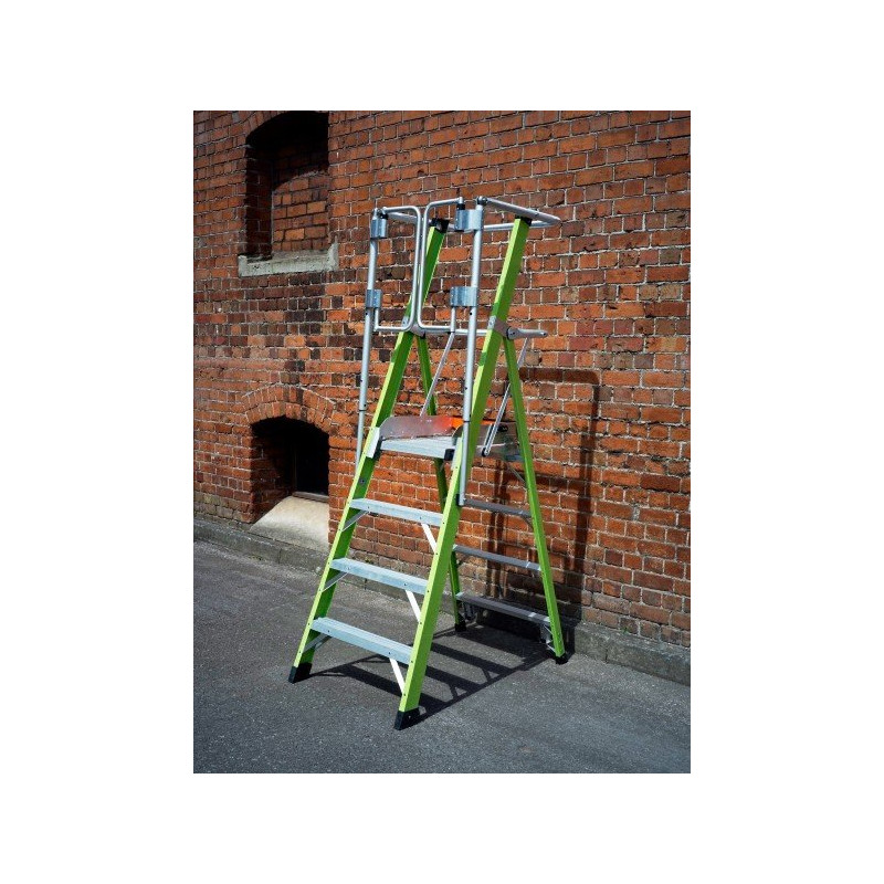 Изработена от електро непроводима сплав на фибростъкло и смола, с голяма здравина, тази клетка е по-мобилна и лека от другии варианти, като платформа и скеле. Това в комбинация с Tip & Glide Wheels и позволява да се използва да е изключително компакта и лесна за придвижване. Little Giant Safety Cage е с товароносимост до 170 кг.