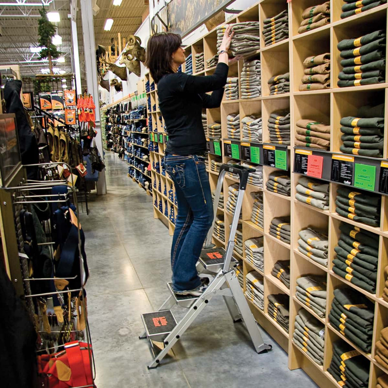 Широка е само 12,7 см.  Със супер компактните си размери Little Giant SAFETY STEP се побира навсякъде.  Идеалната стълба за дома или офиса. Перфектното решение за лодки, къмпинги и други.