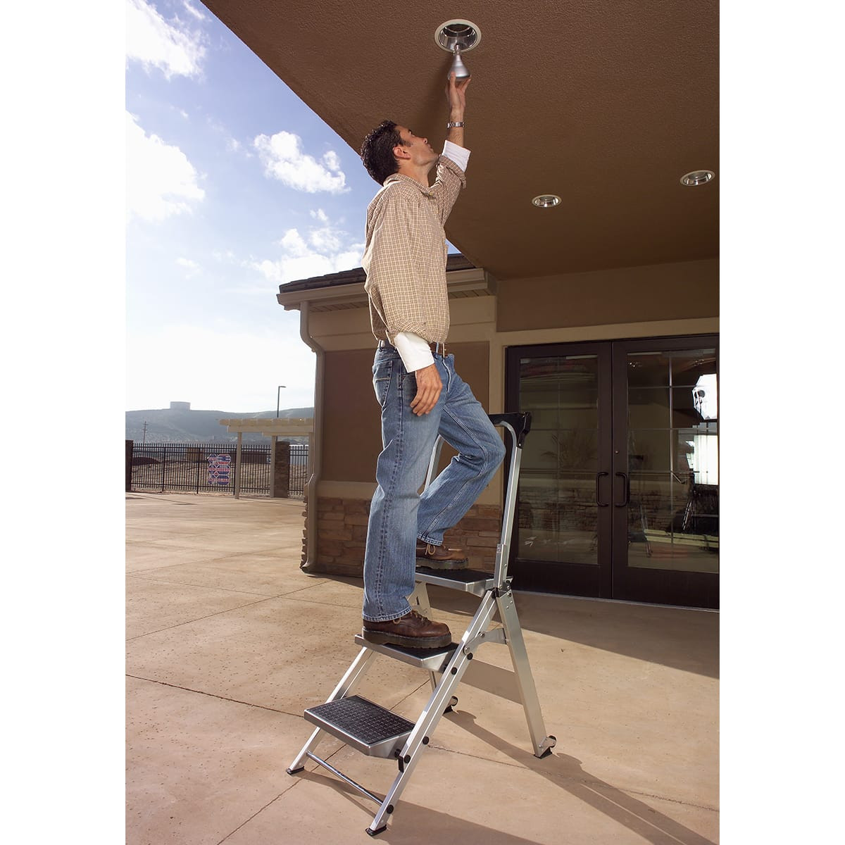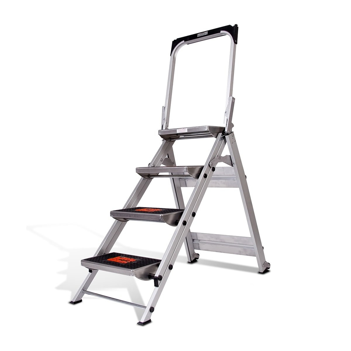 Little Giant Safety Step е идеалното решение при нужда от малка стълба в дома или офиса. Разполага с широки, устойчиви на приплъзване стъпала за максимална стабилност и сгъваема защитна рамка .