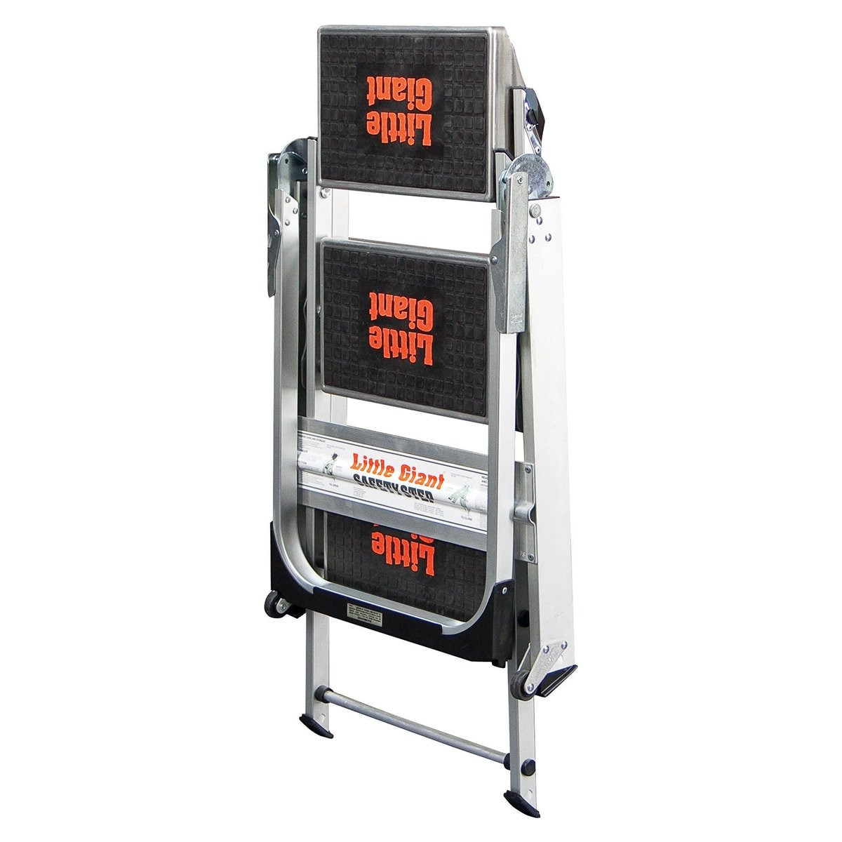 Little Giant Safety Step е идеалното решение при нужда от малка стълба в дома или офиса. Little Giant Safety Step разполага с широки, устойчиви на приплъзване стъпала за максимална стабилност и сгъваема защитна рамка /предпазител/ с вградена подложка за инструменти. Little Giant Safety Step също е идеален за лодки, RV и къмпинг, благодарение на изключително компактните си размери за съхранение. Изработена е от здрава, устойчива на корозия алуминиева сплав за допълнителна издръжливост, и все пак остава лека и лесно преносима.