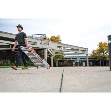 Всъщност е 20% по-лека! Little Giant VELOCITY е изработена от специален материал, който я прави 20% по-лека от всяка друга индустриална стълба от този клас. Освен това колелцата Tip & Glide ™ позволяват лесно транспортиране от място на място.