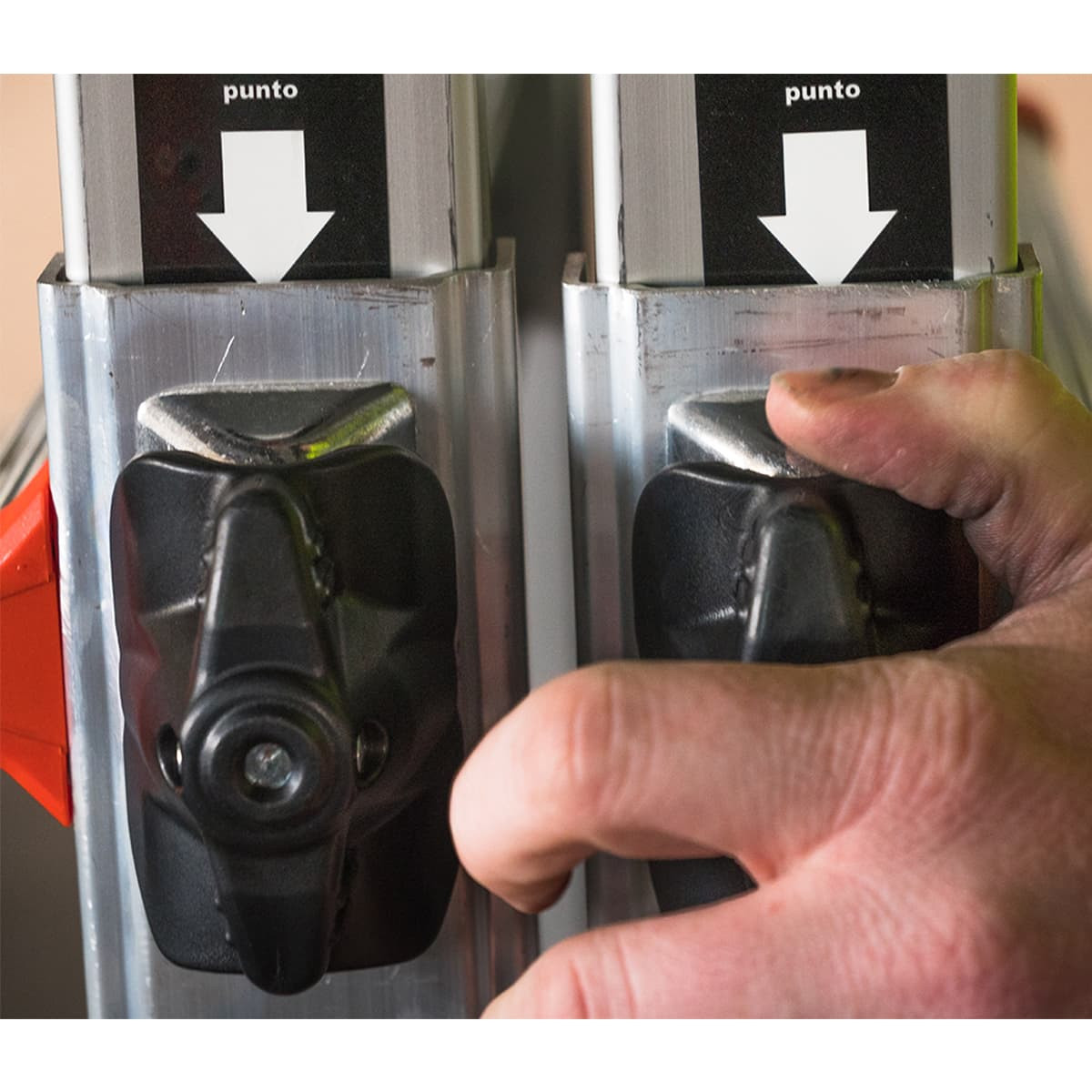 Настройте Вашата стълба за секунди благодарение на патентованата система Rock Lock ™. Просто натиснете ключалката, за да освободите и регулирате стълбата, след което отново натиснете, за да заключите. Лесно, бързо и безопасно.