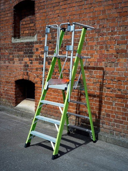 Изработена от електро непроводима сплав на фибростъкло и смола, с голяма здравина, тази клетка е по-мобилна и лека от другии варианти, като платформа и скеле. Това в комбинация с Tip & Glide Wheels и позволява да се използва да е изключително компакта и лесна за придвижване. Little Giant Safety Cage е с товароносимост до 170 кг.