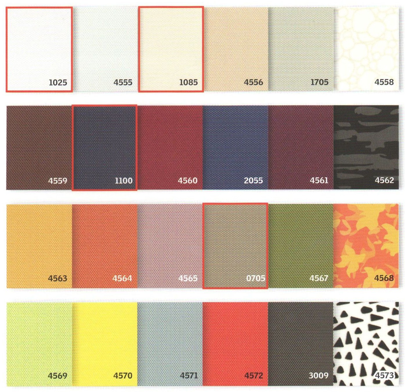 * Стандартни цветове на затъмнителната горна част: бяло 1025, сиво 0705, бежово 1085 и тъмно синьо 1100.